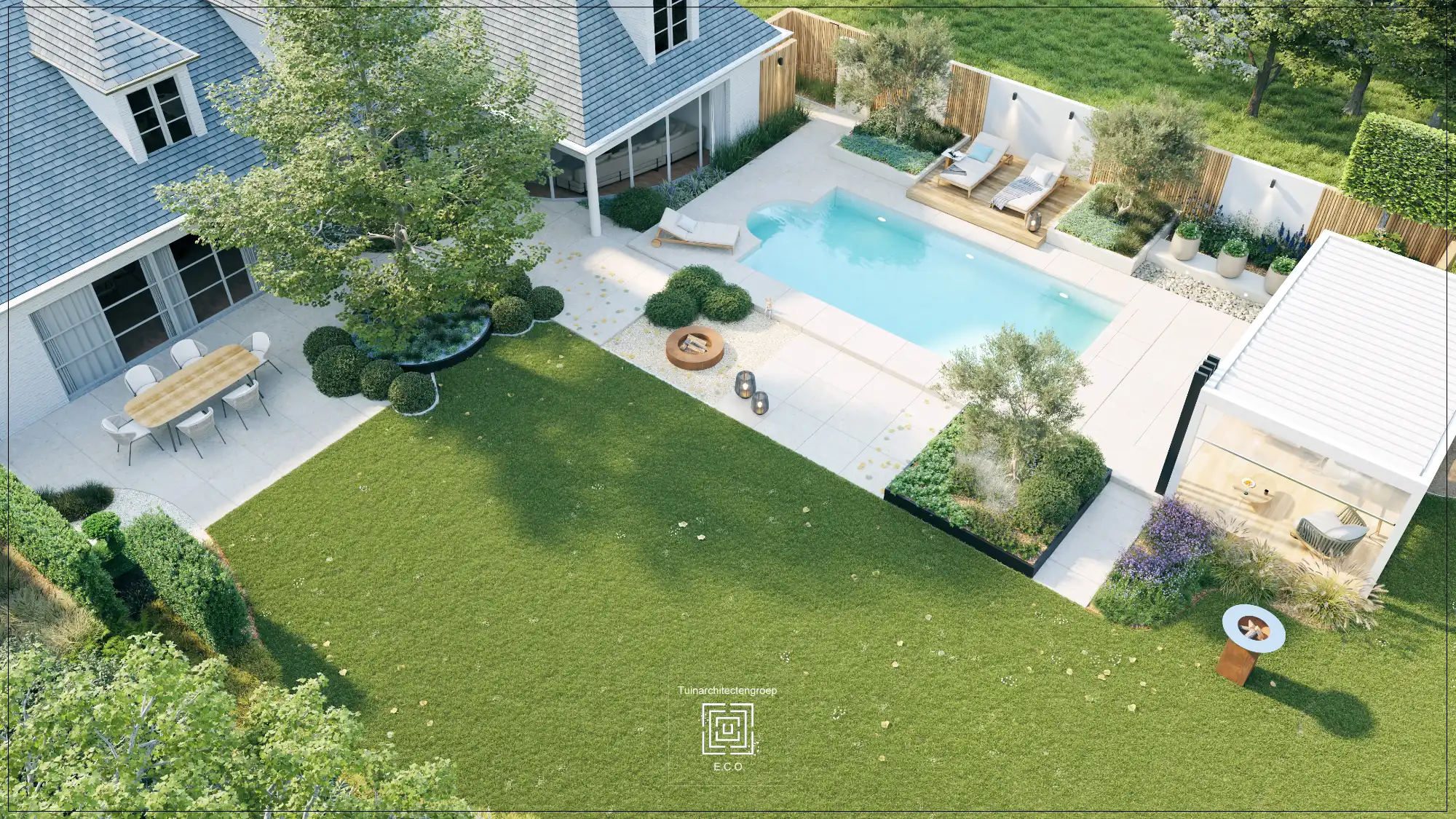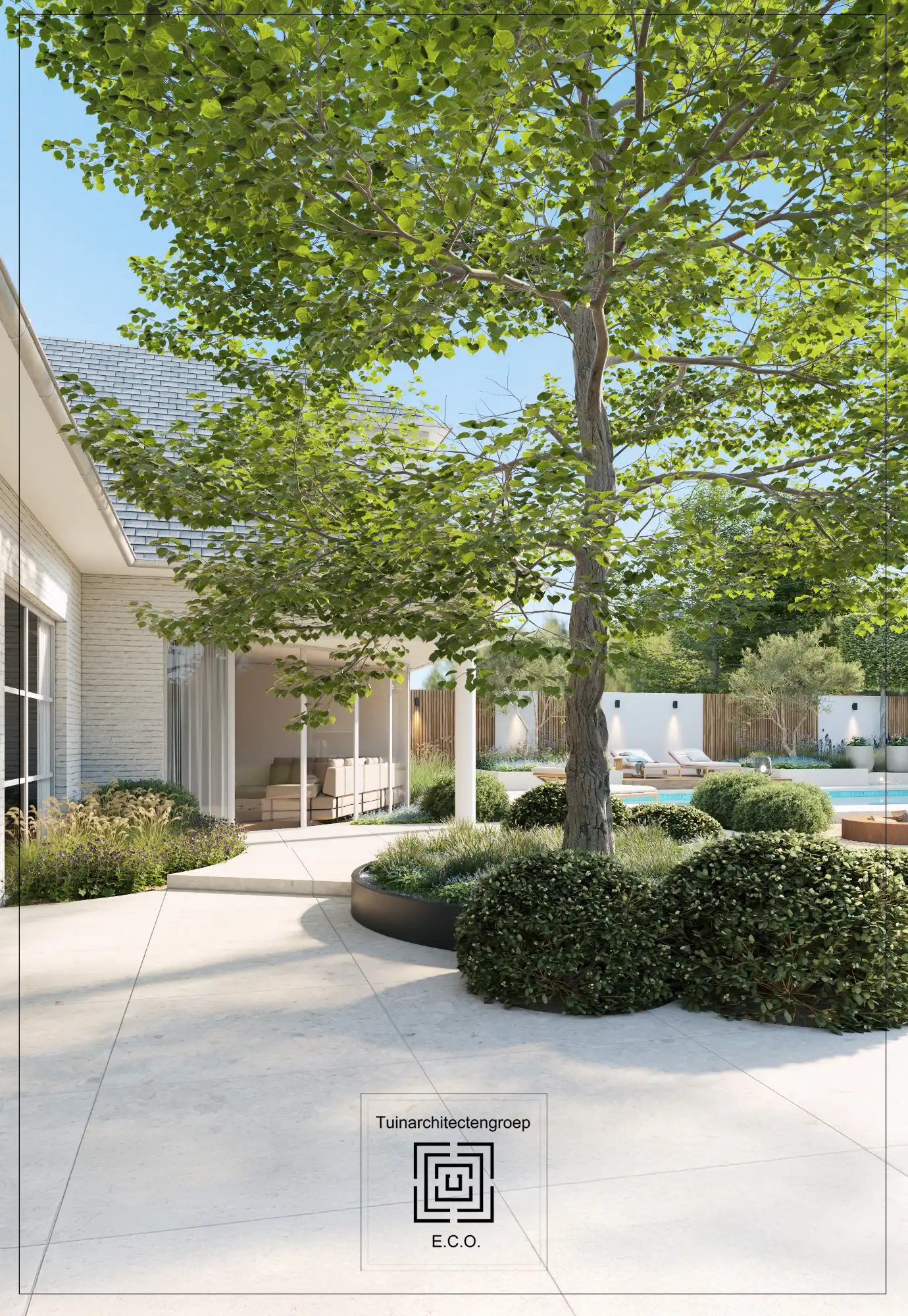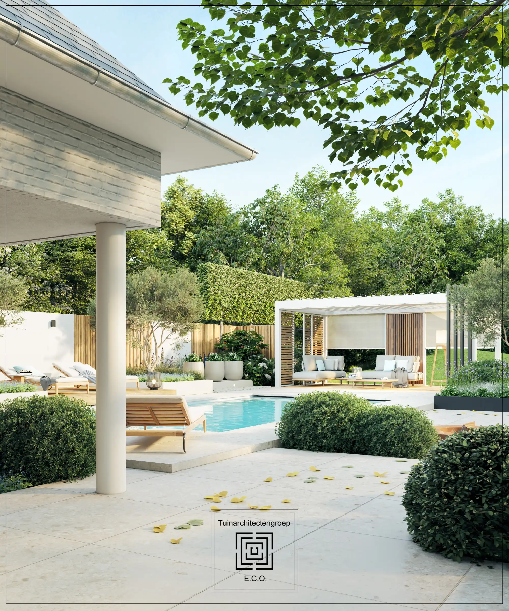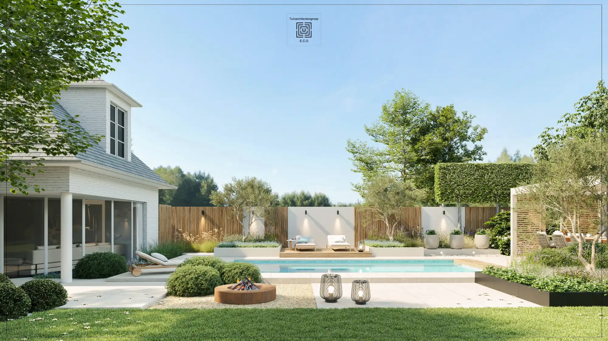 Volledige heraanleg van een villatuin in Boom.Het bestaande zwembad wordt behouden en gerenoveerd.