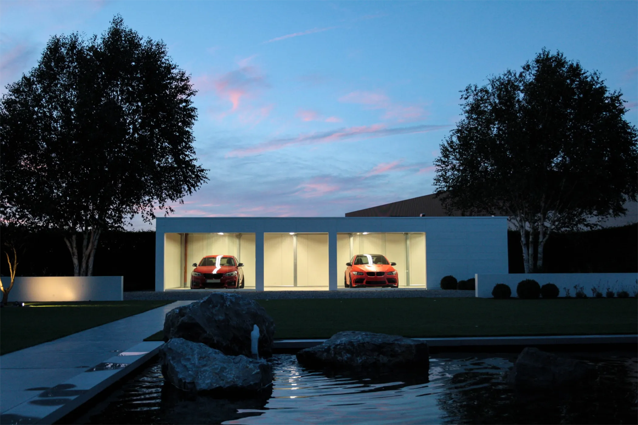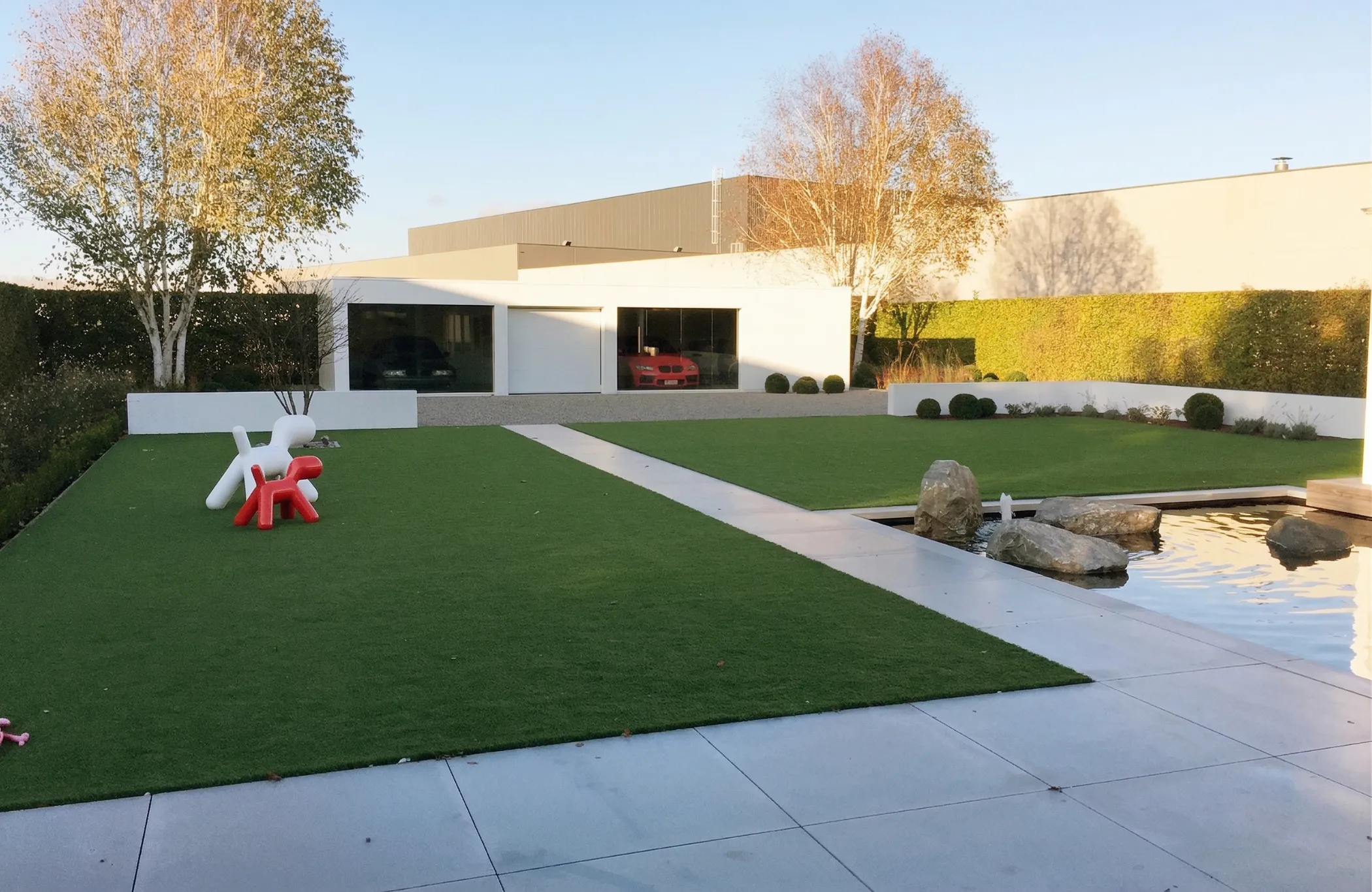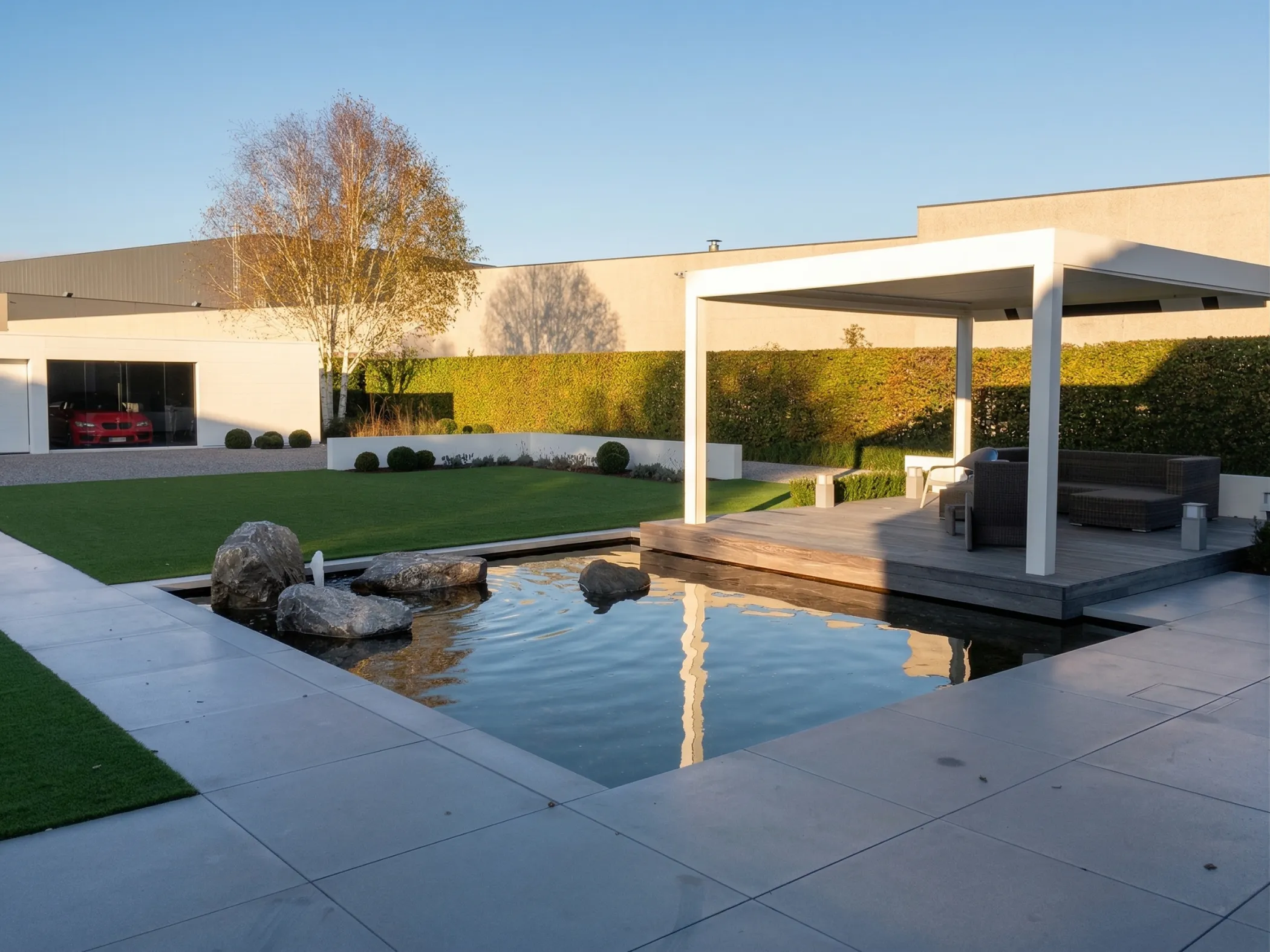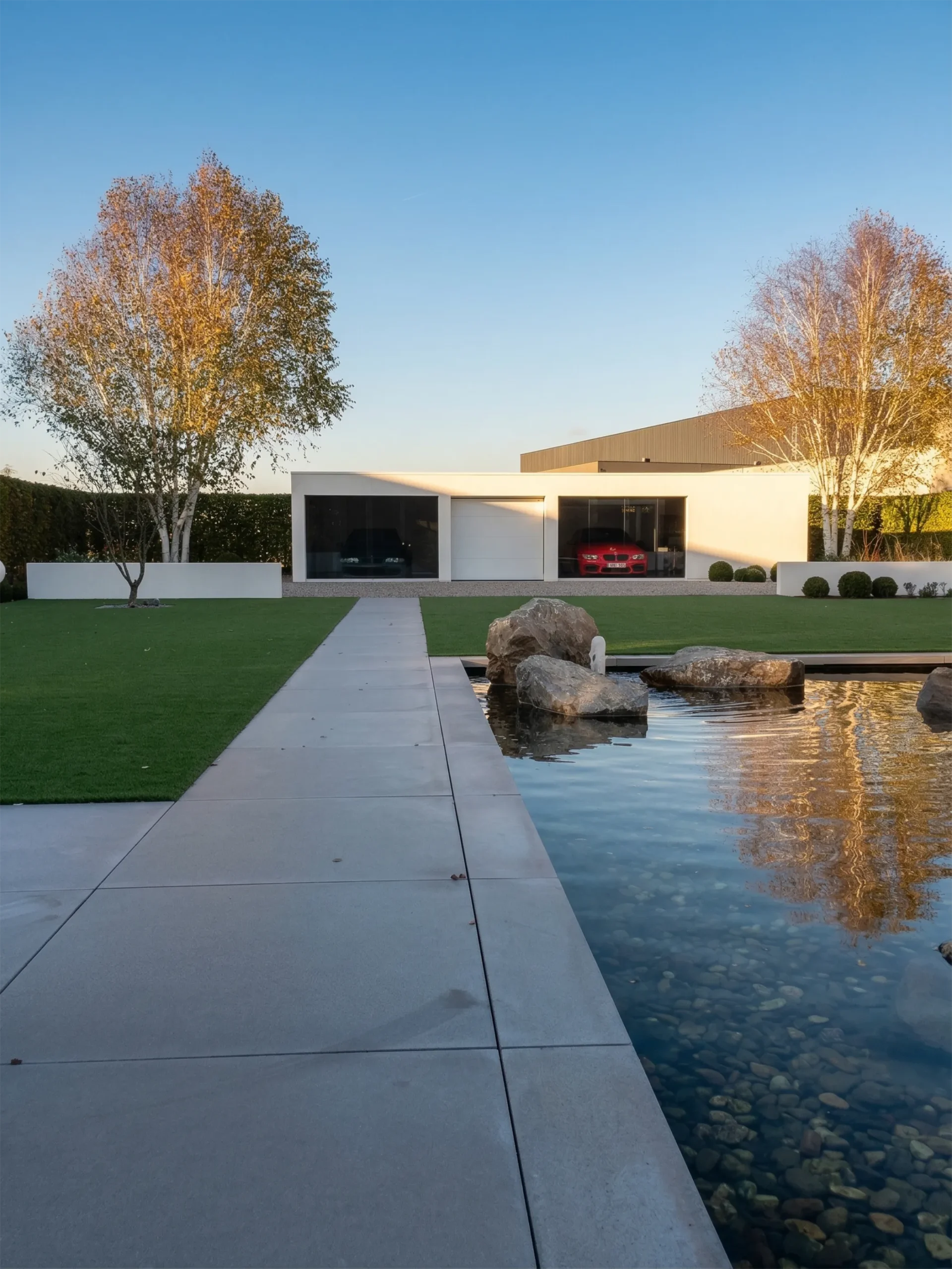 Zo transformeert de garage van een noodzakelijke constructie tot het architecturale orgelpunt van de tuin – geen storend element, maar een verfijnde blikvanger die het geheel versterkt.