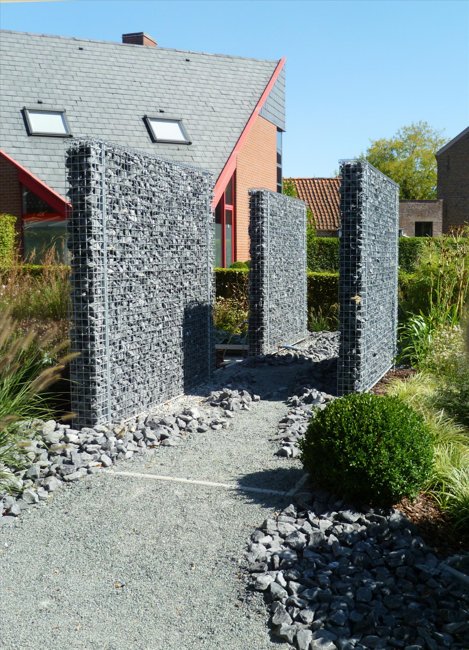 Om het zicht op en het geluid van de weg te temperen, werd gewerkt met hoge steenkorven die tegelijk privacy en geborgenheid creëren.