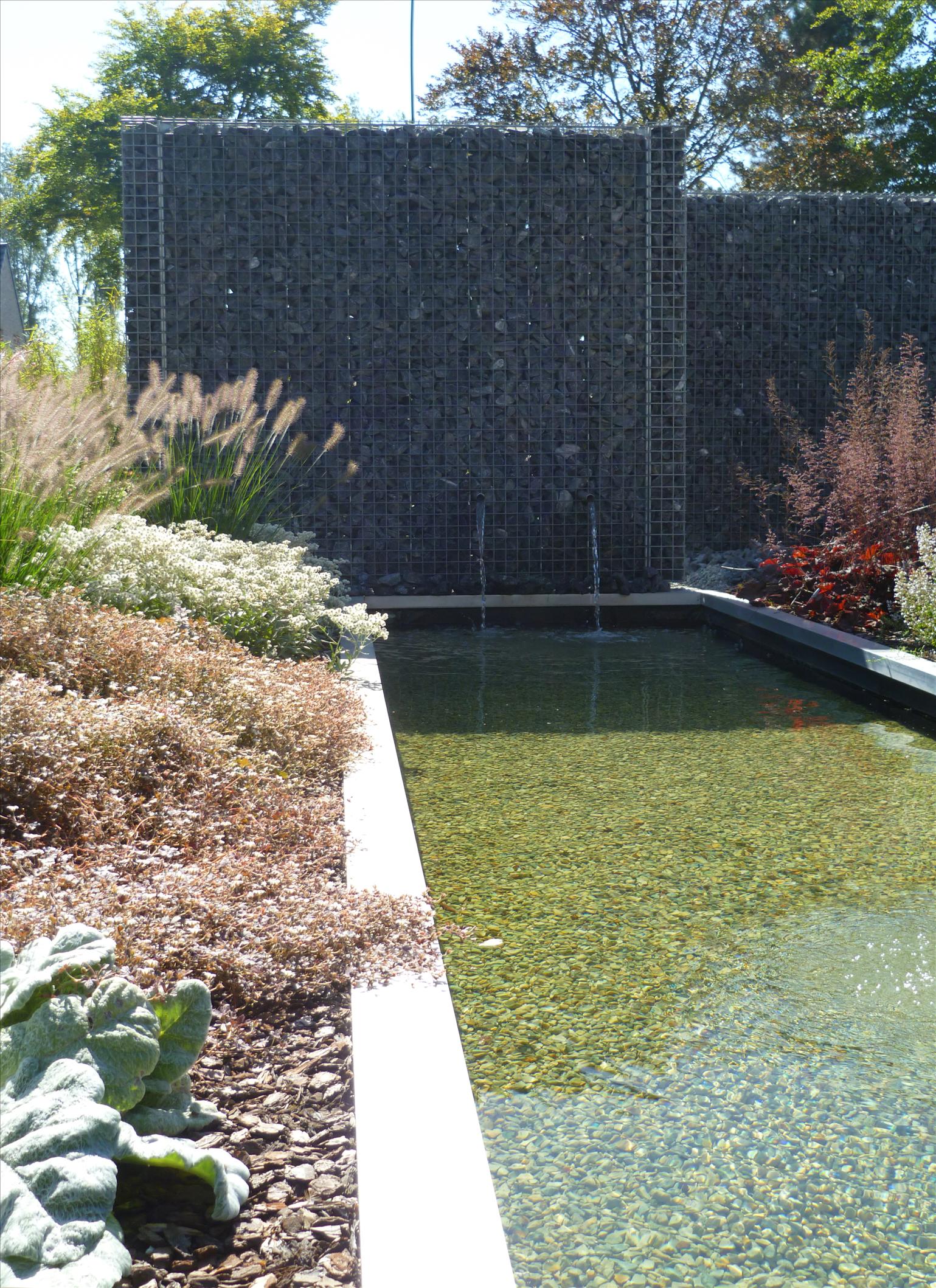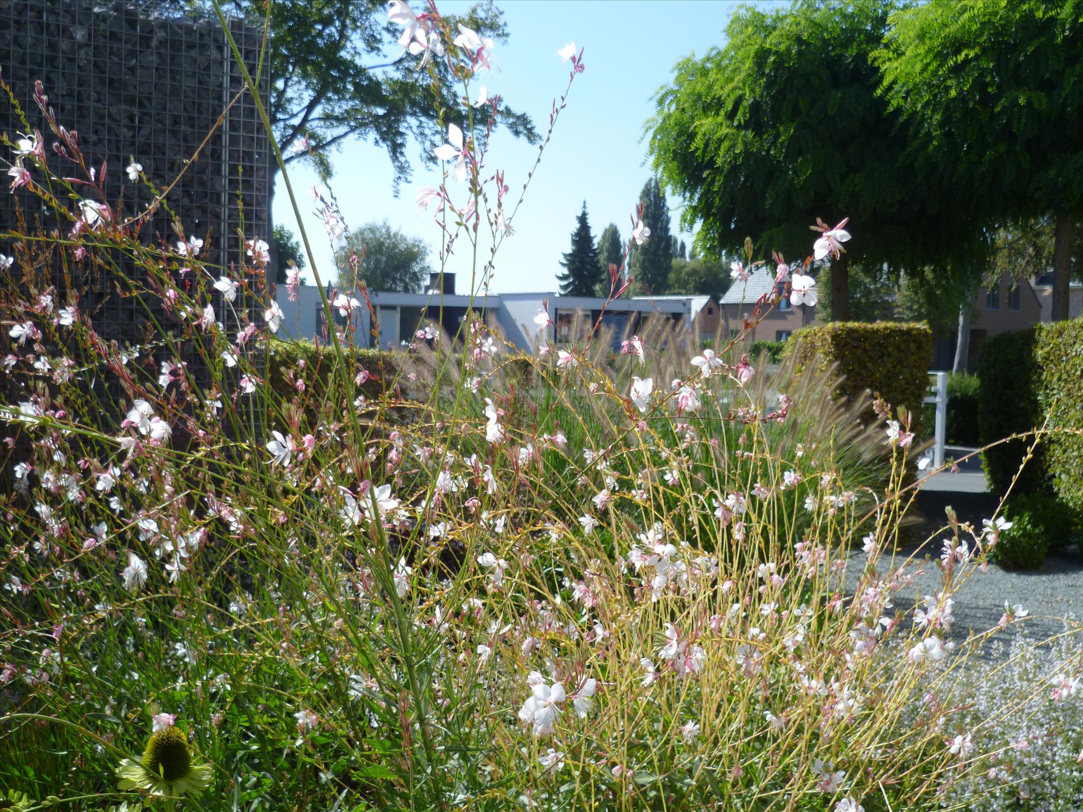 Aansluitend werd een ondiepe waterpartij met waterspuwers voorzien, die in de zomer voor een aangename verkoeling zorgt.